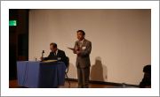 母校の近況を紹介する和田光弘准教授(平成4年卒)
