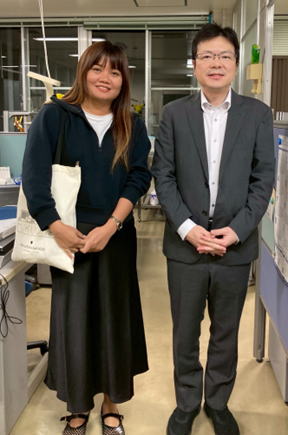 1,3,5-triphenylbenzeneの蛍光検出-HPLC法の開発」及び「加熱式たばこ主流煙中に含まれるハイドロキノン類とベンゾキノン類の分別定量と濃度比較」です。二人とも頑張りましたね!